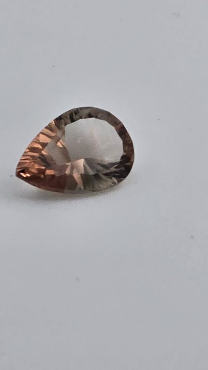 Dreamy 3.3ct peachy pink Oregon Sunstone pear cut (13x9mm) with gorgeous copper schiller. Perfect for a pendant — stunning in rose gold and priced right for the quality.