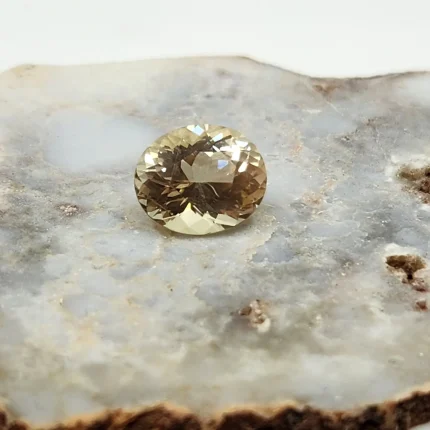 Learn more about our Custom Jewelry Design Process4.65ct oval Oregon Sunstone with peach color and copper schiller. 11.7x9.8mm loose gemstone—ideal for a custom ring, pendant, or brooch.