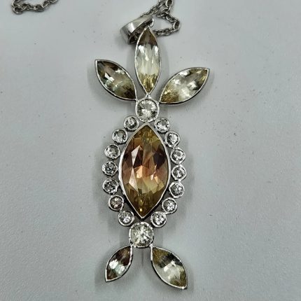 “Weird!” Oregon Sunstone Statement Pendant – 8ct Bicolor Center with 22 Surrounding Stones, 61mm Sterling Silver Design