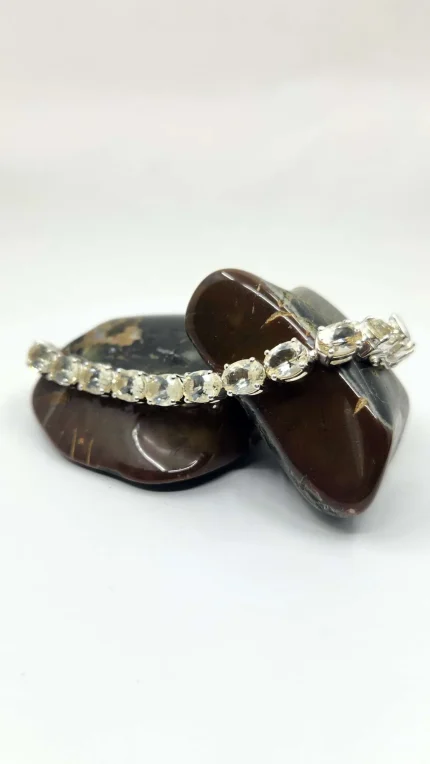 Here's yet another champagne Oregon Sunstone version of the classic tennis bracelet every woman needs in their jewelry box. But what exactly is a tennis bracelet, and why do we call them that? It seems the dainty gemstone bracelets, most commonly associated with diamonds, were called eternity bracelets until the late 1970s, when tennis star Chris Evert was known to wear this type of bracelet while playing. As a matter of fact, in 1978, while playing in an early round of the US Open, her bracelet broke in the middle of a match, and play was suspended until it was found. Soon, jewelers started referring to them as tennis bracelets, and women began wearing them in much less formal settings than ever before. Of course, a lot of work goes into a tennis bracelet, each stone needs to be set, and each piece is linked together to make this beautiful fashion accessory. But you don't need to have sports star money to afford an Oregon Sunstone tennis bracelet. This lavish bracelet featuring 24 7x5 oval Oregon Sunstones is available on my website. The total length is 7.5 inches. It's set in sterling silver with a rhodium plating to keep it shining and beautiful without a lot of work.