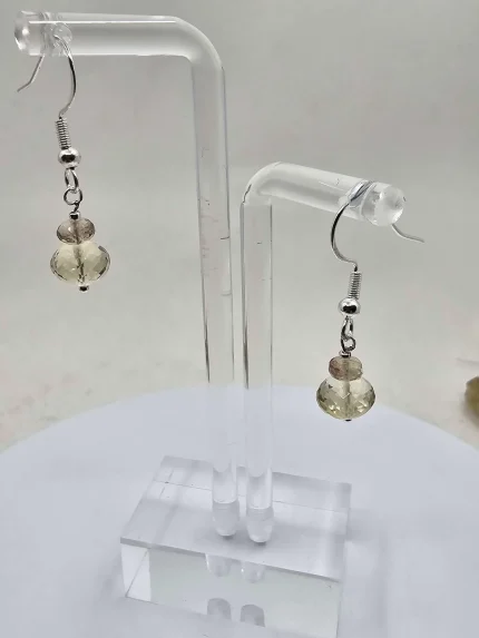 Here's some of the cutest little dangle earrings I've made. Simple, elegant, affordable. A larger 8mm champagne Oregon Sunstone faceted bead, topped by a cute little pinkish schiller bead and a tiny silver one. All set in sterling silver. Pretty, fashionable and able to go easily from office, to a night out at a moments notice.