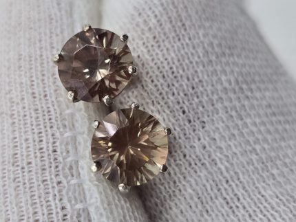 These Oregon Sunstone earrings are the perfect gift for someone who loves Oregon and shiny sparkling gemstones. Crafted in sterling silver and 100% natural Oregon Sunstone, these 4mm studs are the perfect size when you want to wear something stylish, elegant, and simple. Did you know Oregon Sunstone was once mined by Tiffany and Co. and marketed as "Plush Diamonds"? They bought a mine in Eastern Oregon, near the small town of Plush, and had wanted to market Oregon Sunstone as Plush Diamonds. However, it did not work for them logistically, and they eventually sold the mine in the 1940's. These elegant crystals are all clear to champagne golden in color. They will go with any outfit at all. Total ctw is about .75/pair. Each stone is 4mm round.
