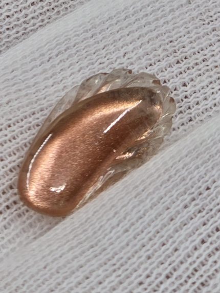 This beautiful gemstone shimmers and shines with its copper schiller. It is mostly a golden color but has some pinkish tint depending on the light. It weighs 3.42ct and measures 11x8.5mm. It's a good-sized stone that would look great in a ring or pendant.