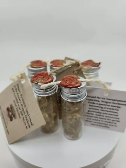 Bring home a sparkling piece of Oregon’s natural beauty with this charming glass bottle filled with approximately 100 carats of genuine tumbled Oregon Sunstone. Each bottle holds a hand-selected mix of small, polished stones that showcase the stunning variety this rare feldspar gem has to offer.Whether you're starting a gem collection, looking for a unique gift, or simply want a little sparkle from the Pacific Northwest, this bottle of tumbled Oregon Sunstones is sure to delight.