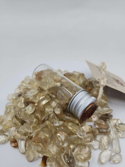 Bottle of Tumbled Oregon Sunstone, some with schiller