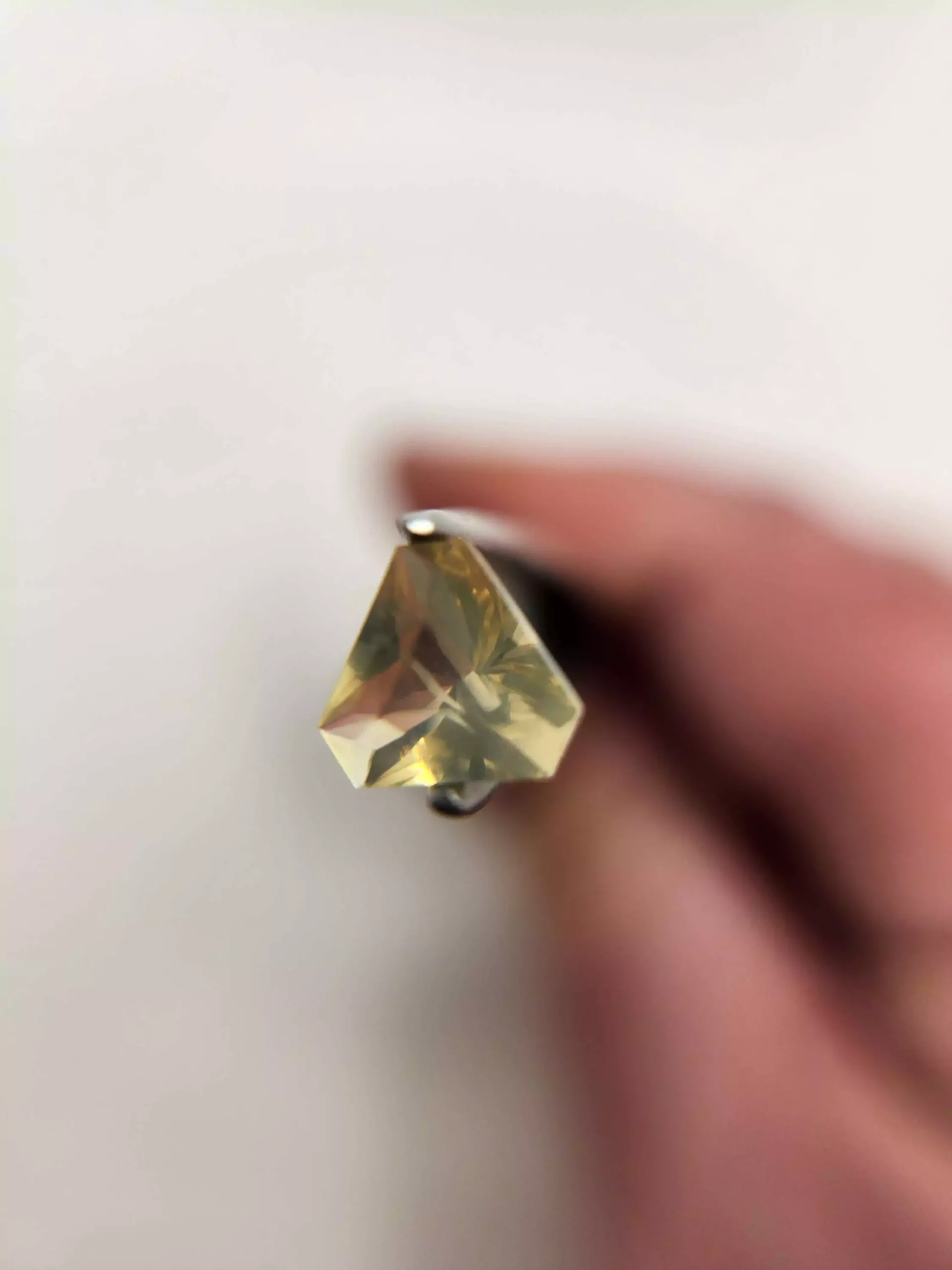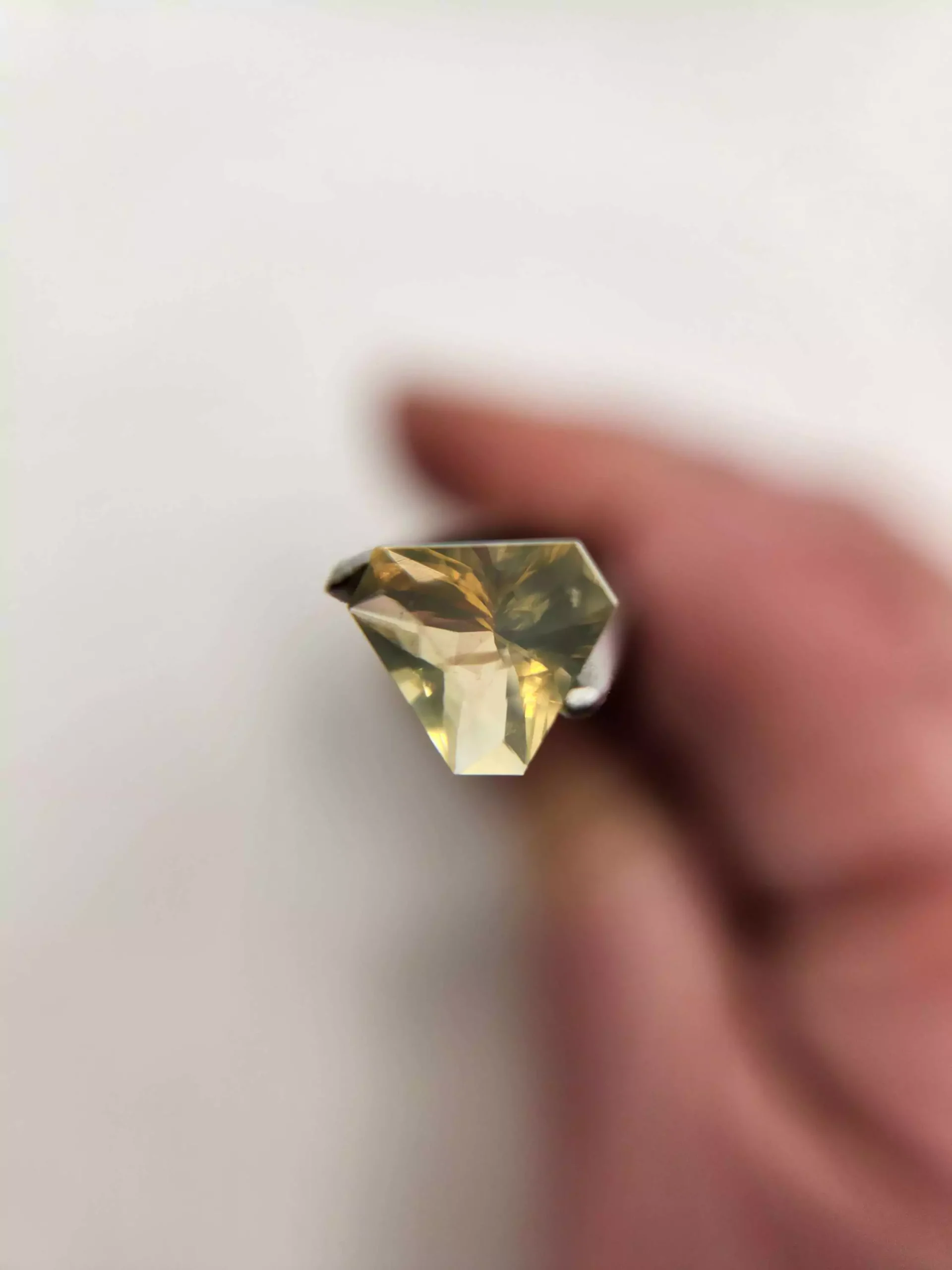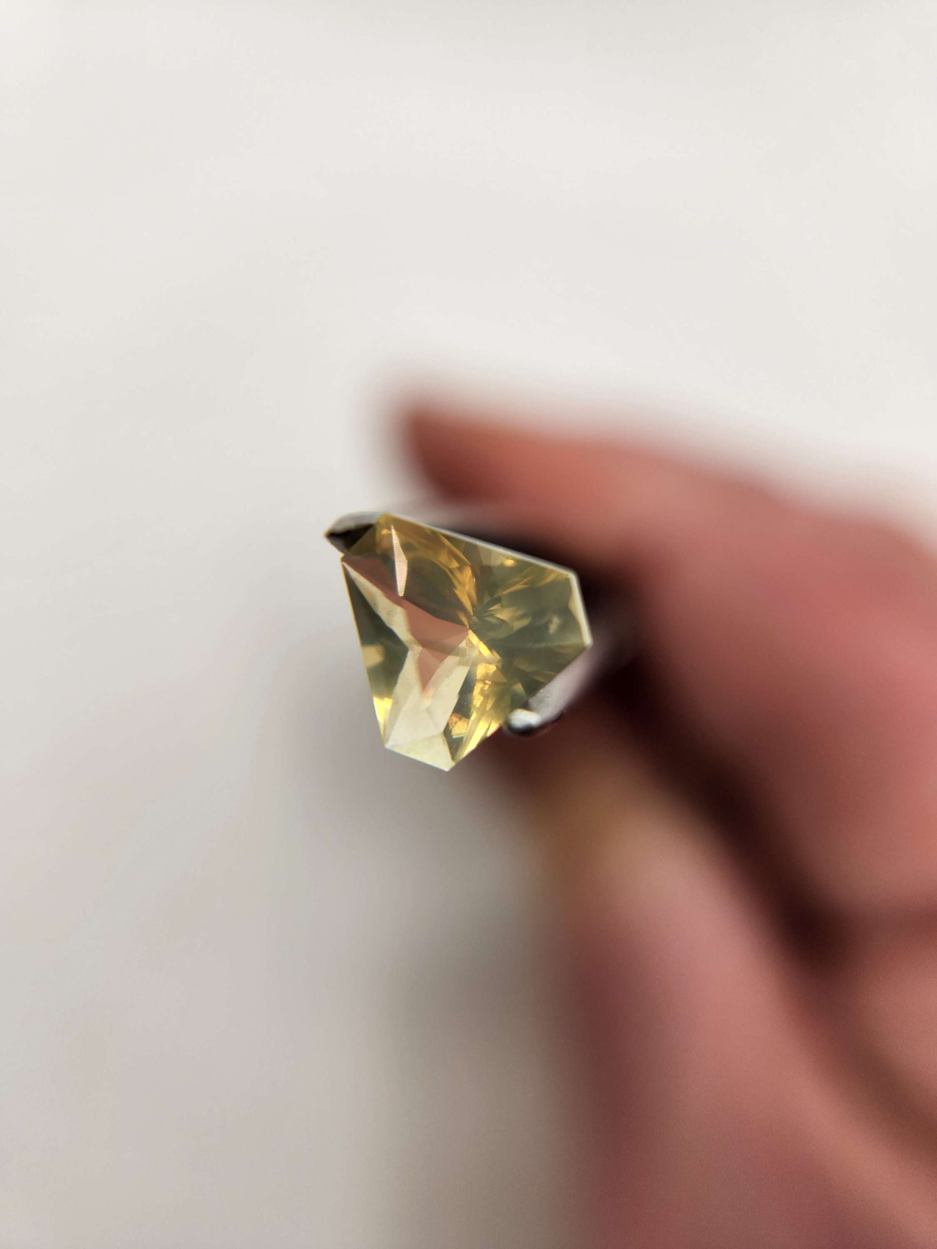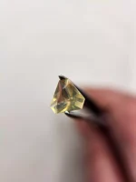 This little stone has a pale yellowish green color that should look great in either yellow or white gold or in silver.