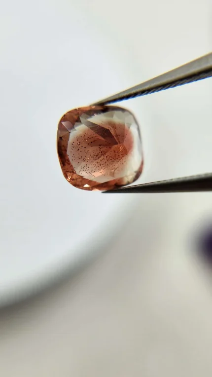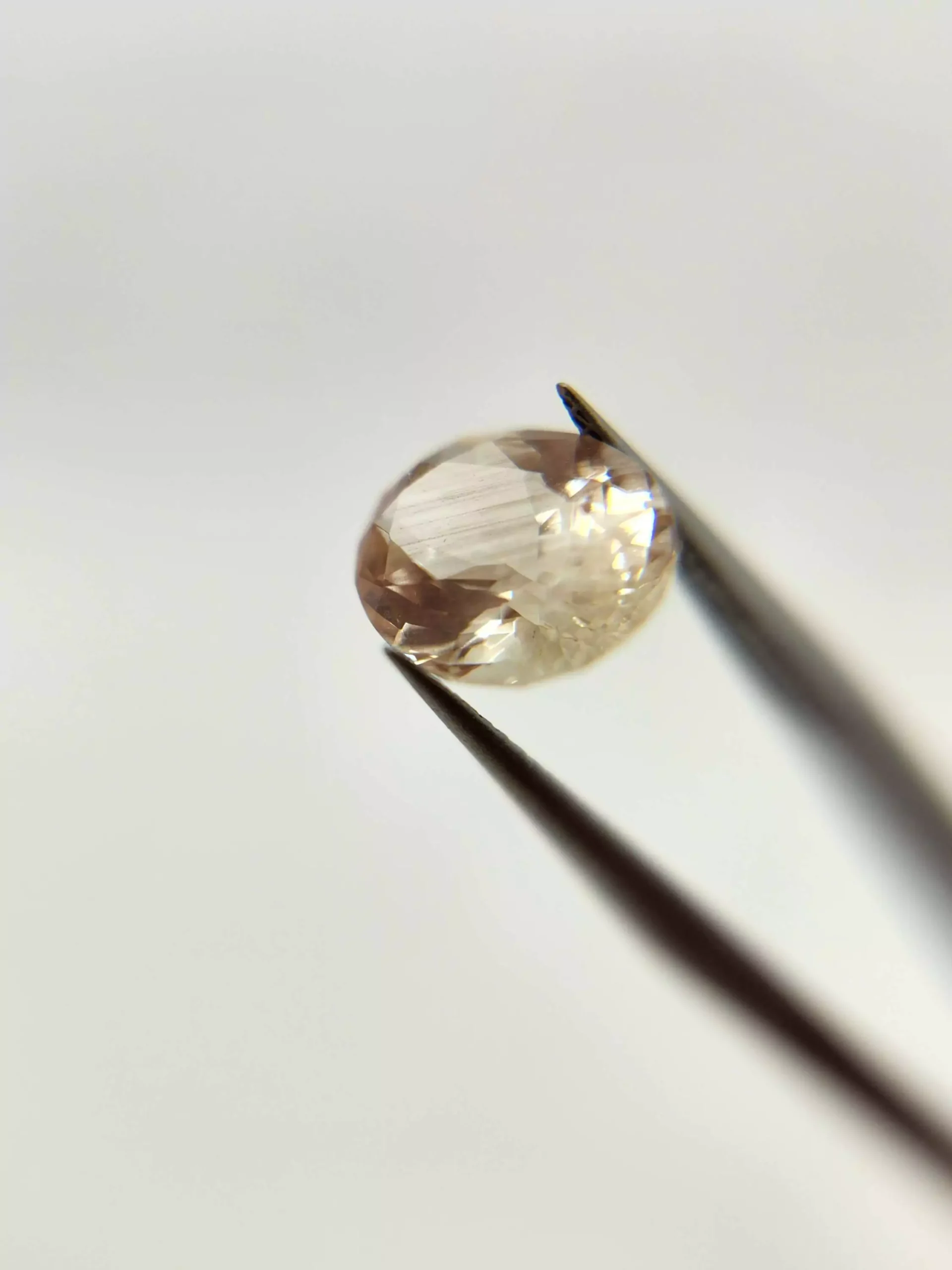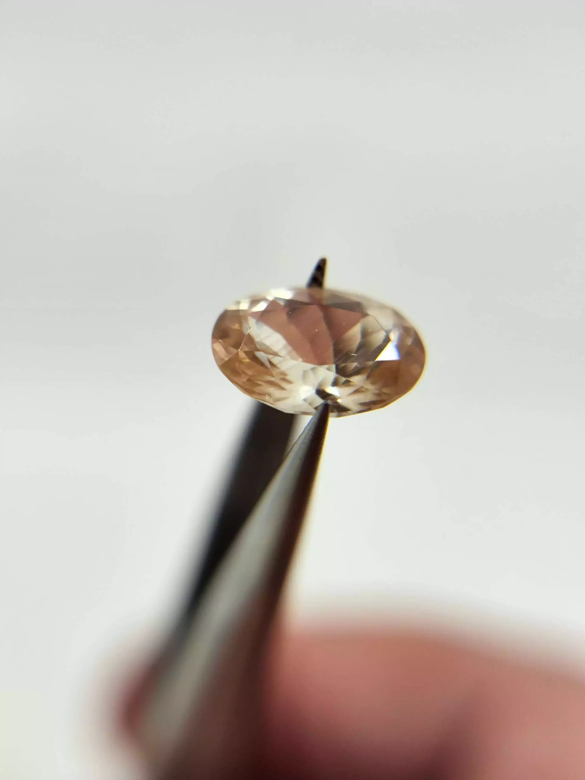 This cute pink Oregon Sunstone has nice copper schiller diagonally across the face. Just made to bring sunshine wherever it goes.
