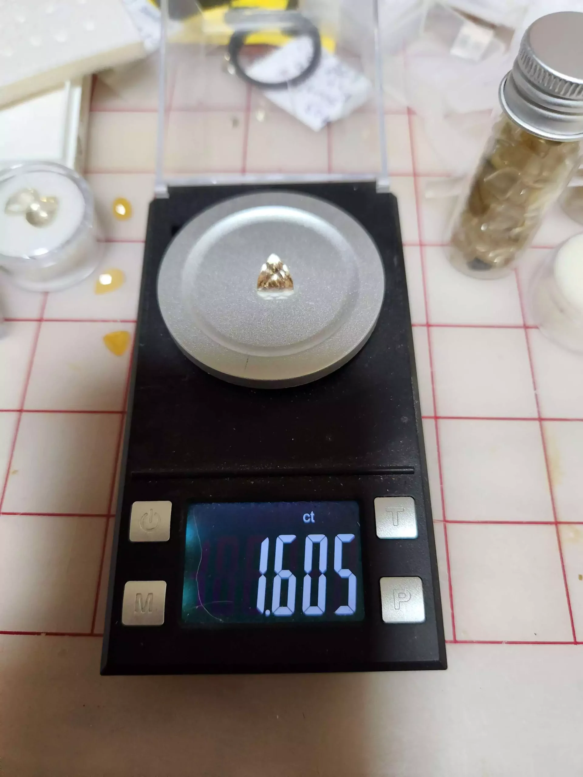 This stone measures 7.8mm and weighs 1.6ct.