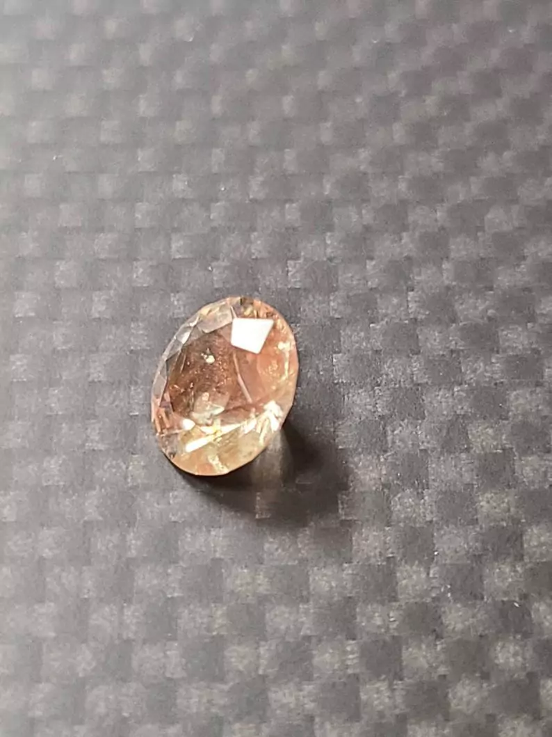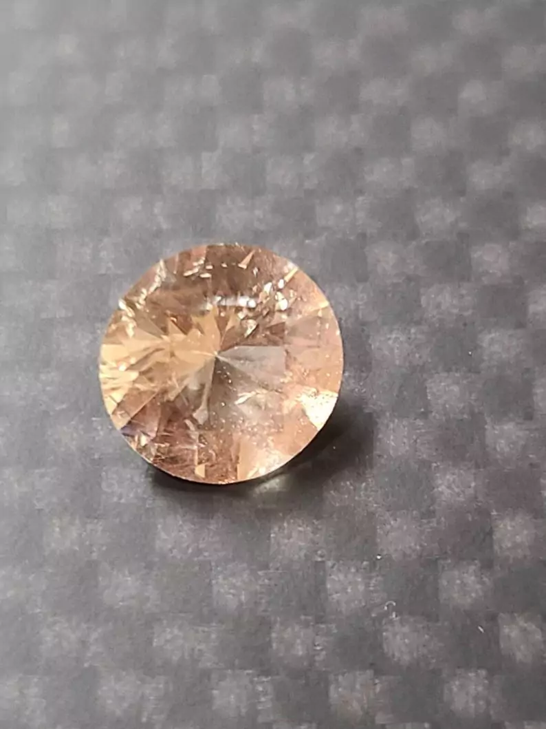 A brilliant 1.93 ct round Oregon Sunstone with warm peach tones and sparkling copper schiller. Ethically mined by RoseGemShop in 2020 from the Dust Devil Mine near Plush, Oregon. Natural, untreated, and perfect for custom jewelry or collectors.