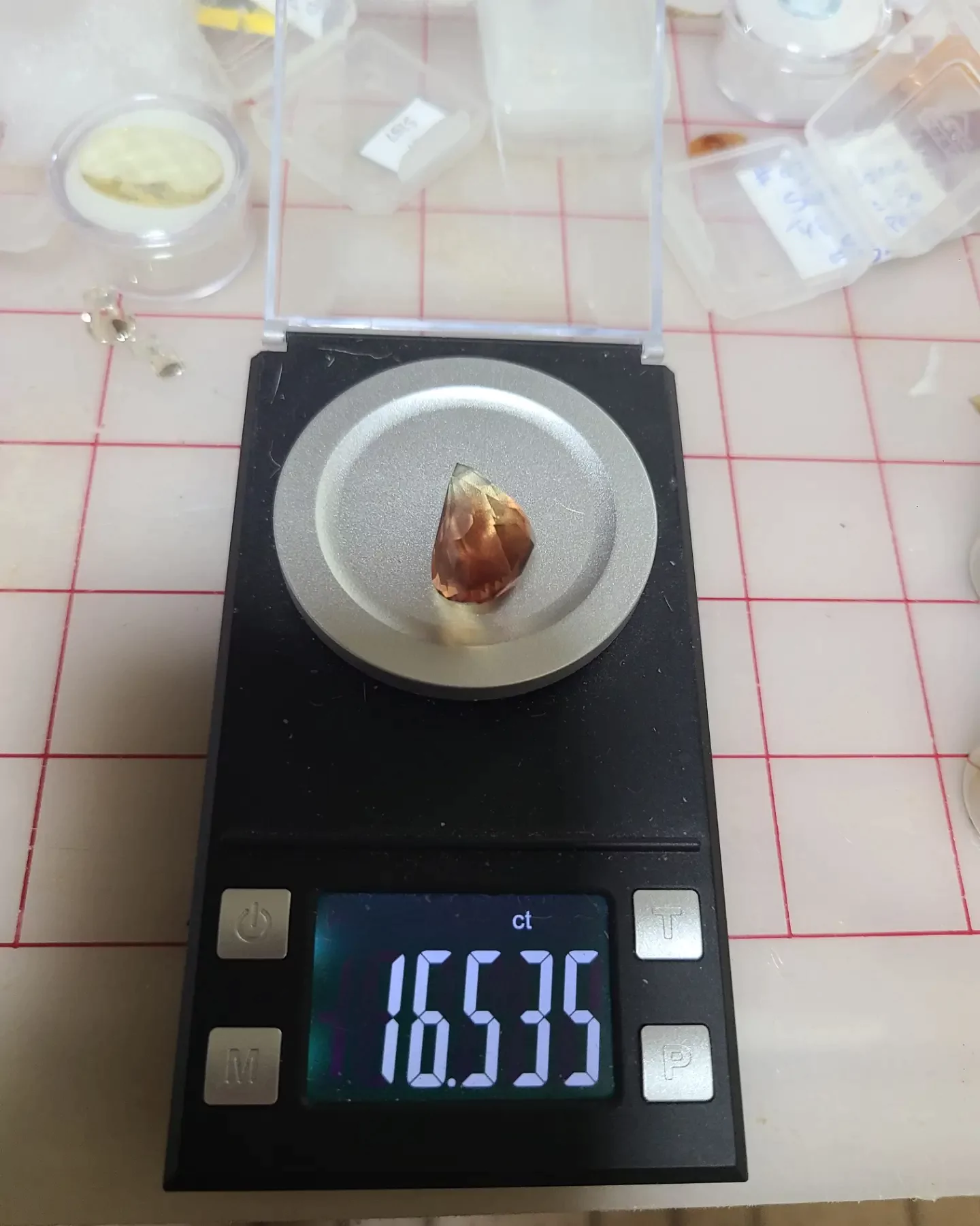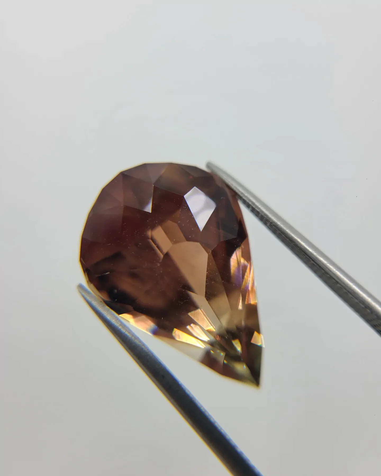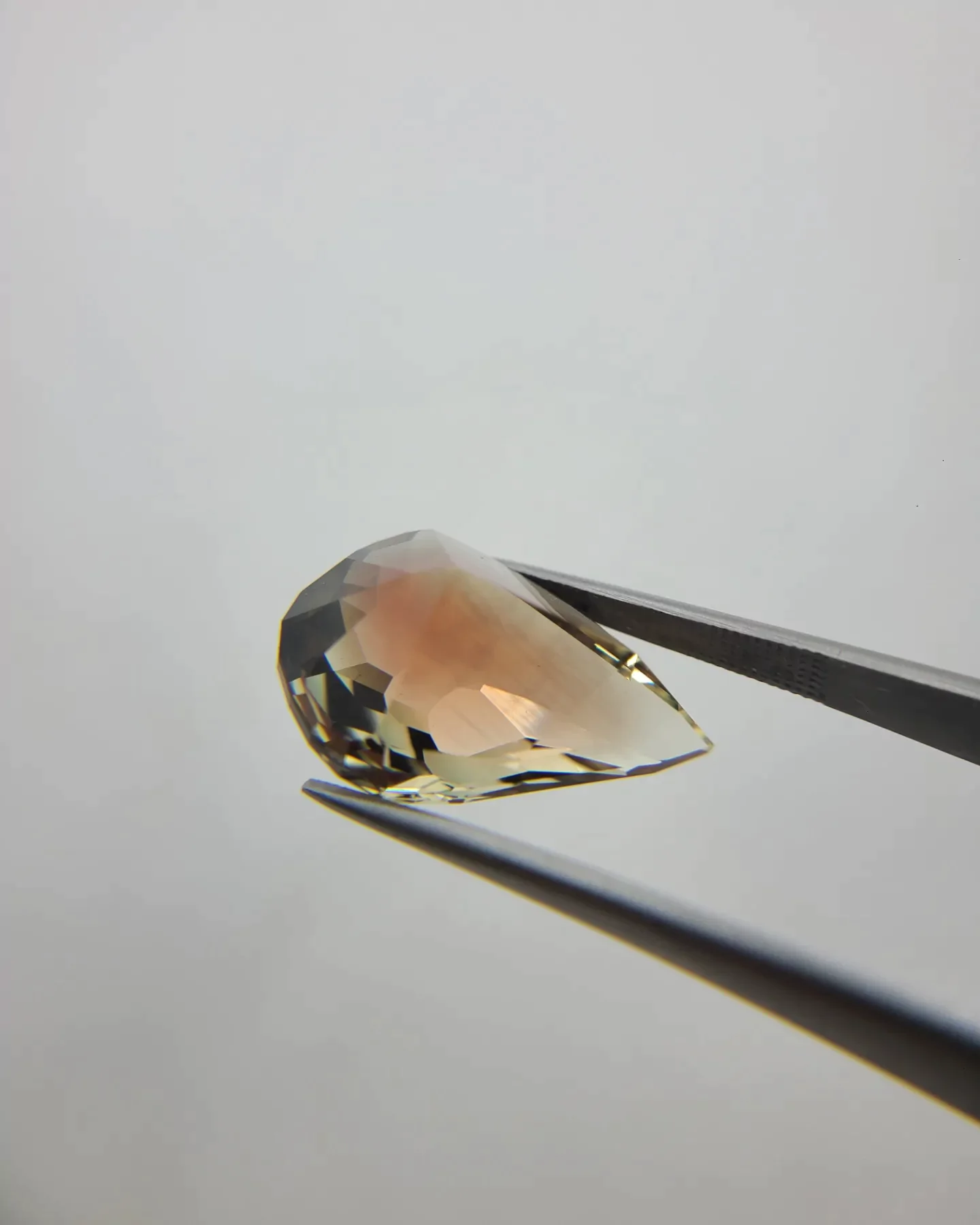 Expertly fashioned into a Barion Pear Cut, this 16.5-carat Oregon Sunstone combines the deep brilliance of the Barion style with the elegant, elongated shape of a pear. The result is a gemstone full of movement, sparkle, and life — perfect for an unforgettable pendant or display piece.