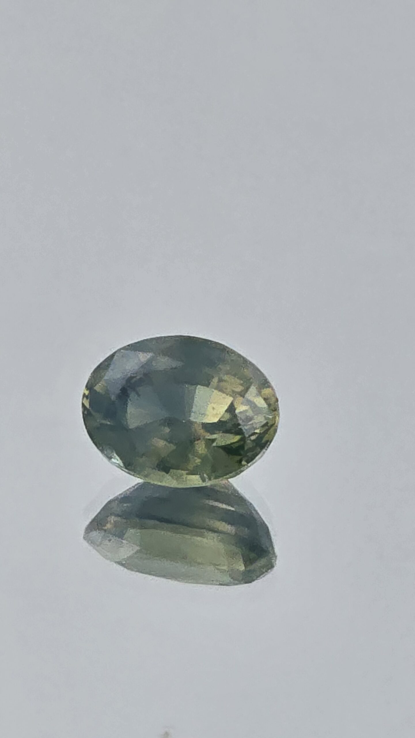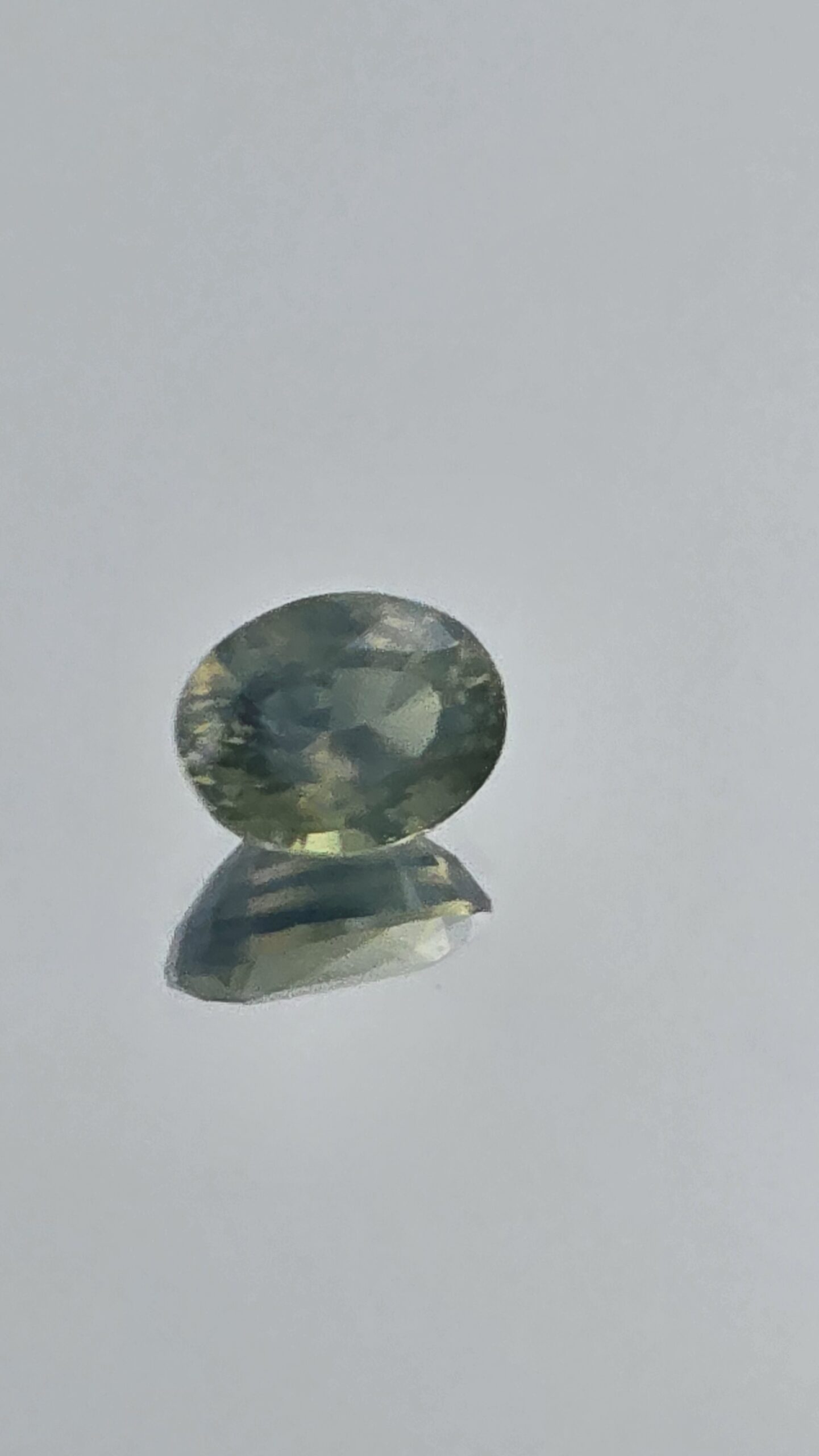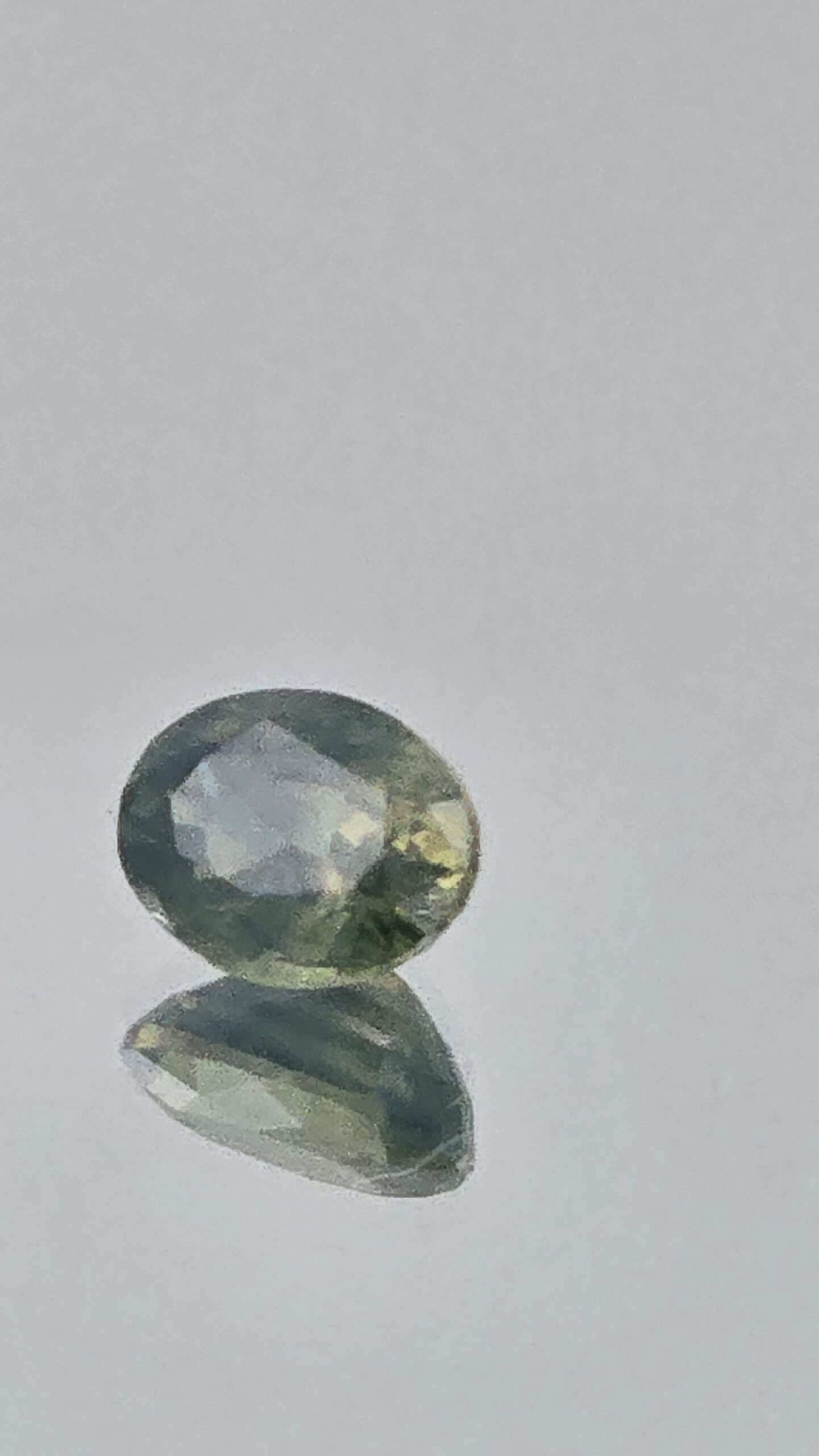 A rare 2.4ct oval parti sapphire from Madagascar, showing vibrant yellow, green, and blue zoning. Step-cut pavilion, 8.5×6.6mm. Perfect for a unique ring or pendant. September’s birthstone.