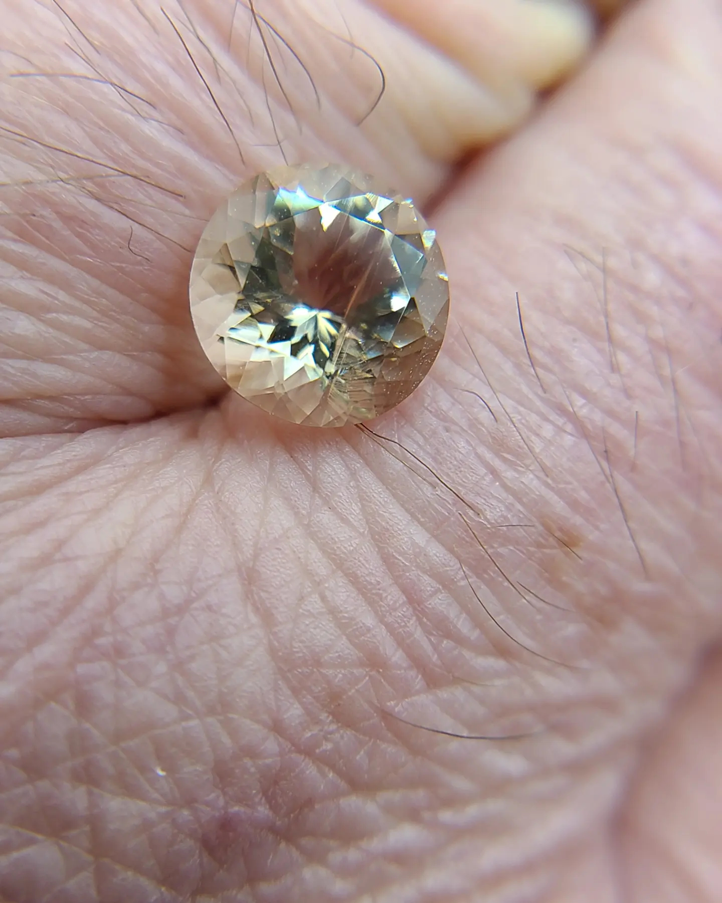 Take a look at this sweet Oregon Sunstone round—an impressively large and vibrant gemstone that stands out immediately. Measuring 9.2mm and weighing 2.66ct, this is a substantial stone perfect for creating a bold, elegant custom piece.