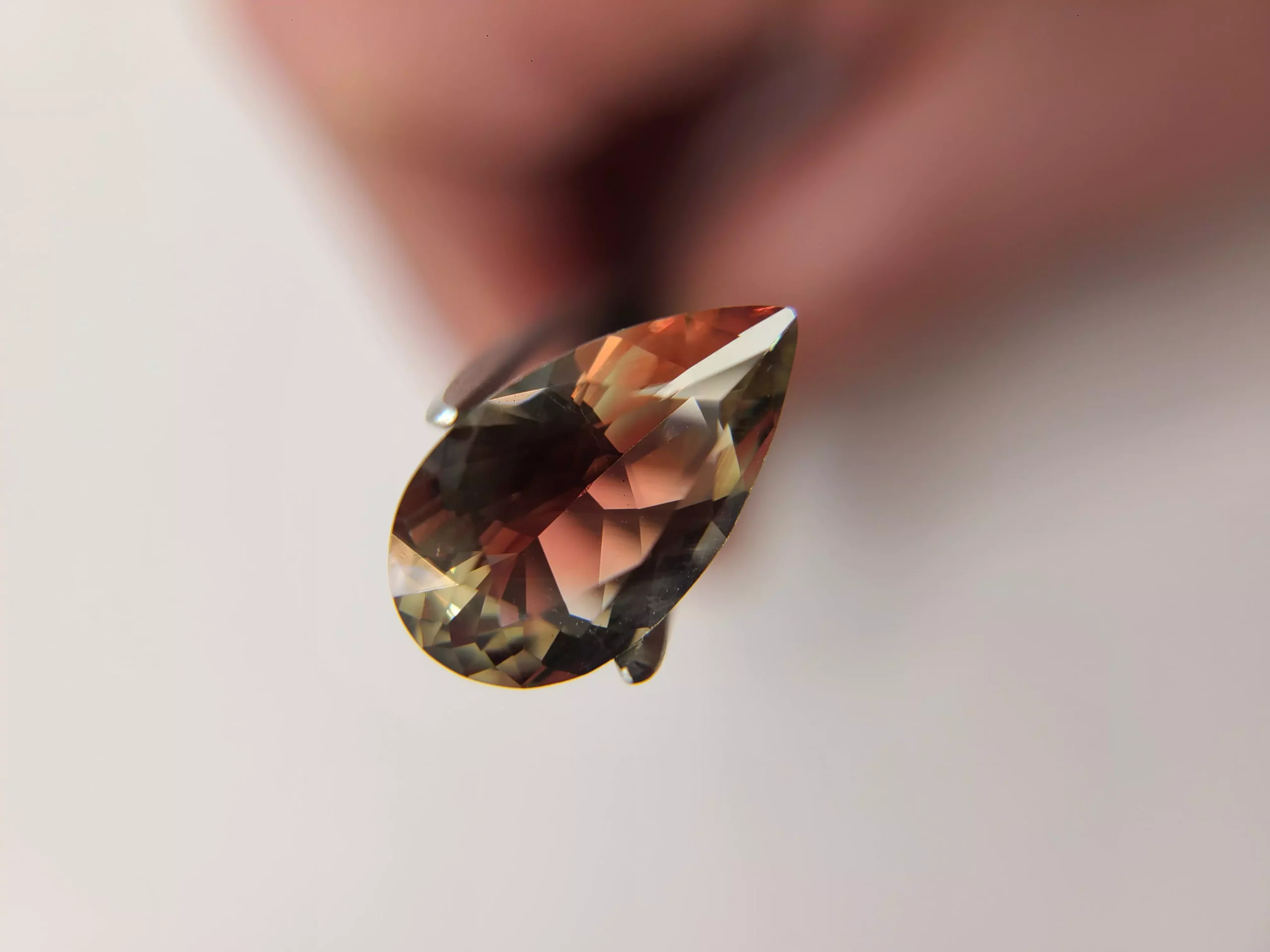 Spectacular 4.14ct pear-shaped Oregon Sunstone bursting with red, green, gold, teal, and champagne tones. A rare multicolor gemstone perfect for a truly special custom jewelry piece.