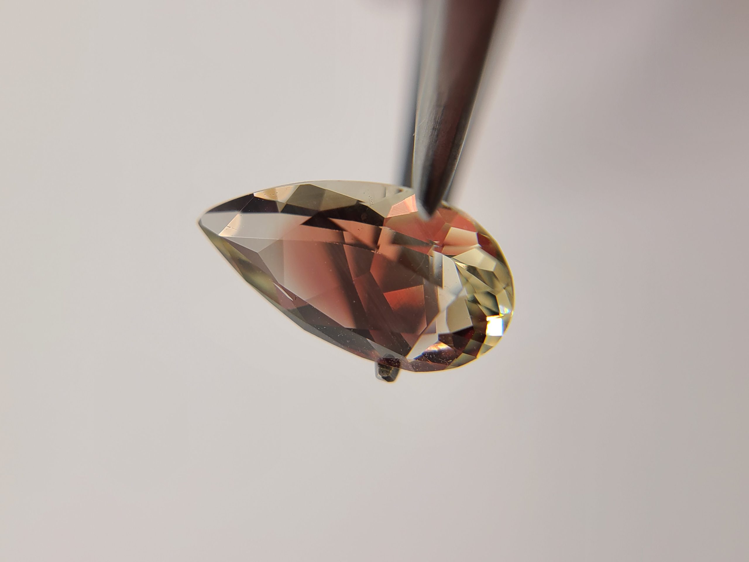 This incredible 4.14ct pear-shaped Oregon Sunstone is a full-spectrum gemstone with nearly every color you could hope for. From a brilliant, bright red to a simmering golden champagne, shifting into lush greens, teal flashes, and even hints of blue—this gem is a color lover’s dream come true.