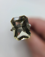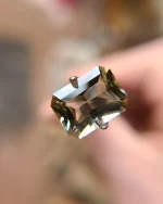 Cut into a sharp and brilliant emerald cut, this gemstone radiates light in clean, refined flashes. It would make an impressive pendant or a truly unique wire-wrapped centerpiece. Its neutral golden tones pair beautifully with sterling silver, yellow gold, or white gold — making it versatile for any jewelry design.