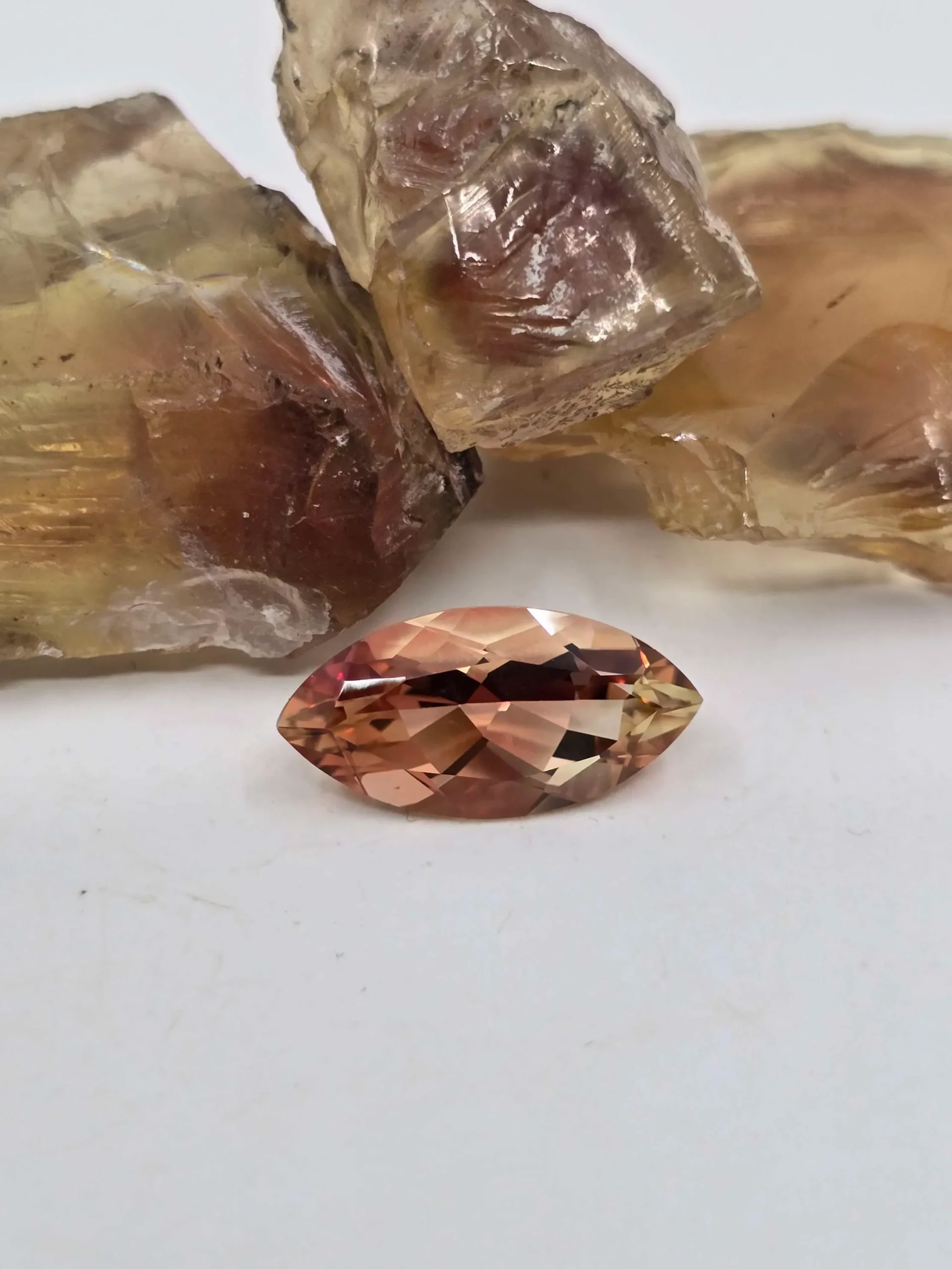 The stone is cut into a nice marquise shape with excellent symmetry.