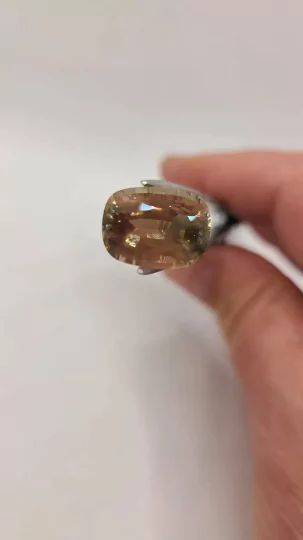 Learn more about our Custom Jewelry Design ProcessA stunning 11mm trillion-cut Oregon Sunstone weighing 3.61ct with exceptional AAA copper schiller. Ethically mined in Oregon and perfect for rings, brooches, or pendants. Rare, untreated, and brilliantly reflective.