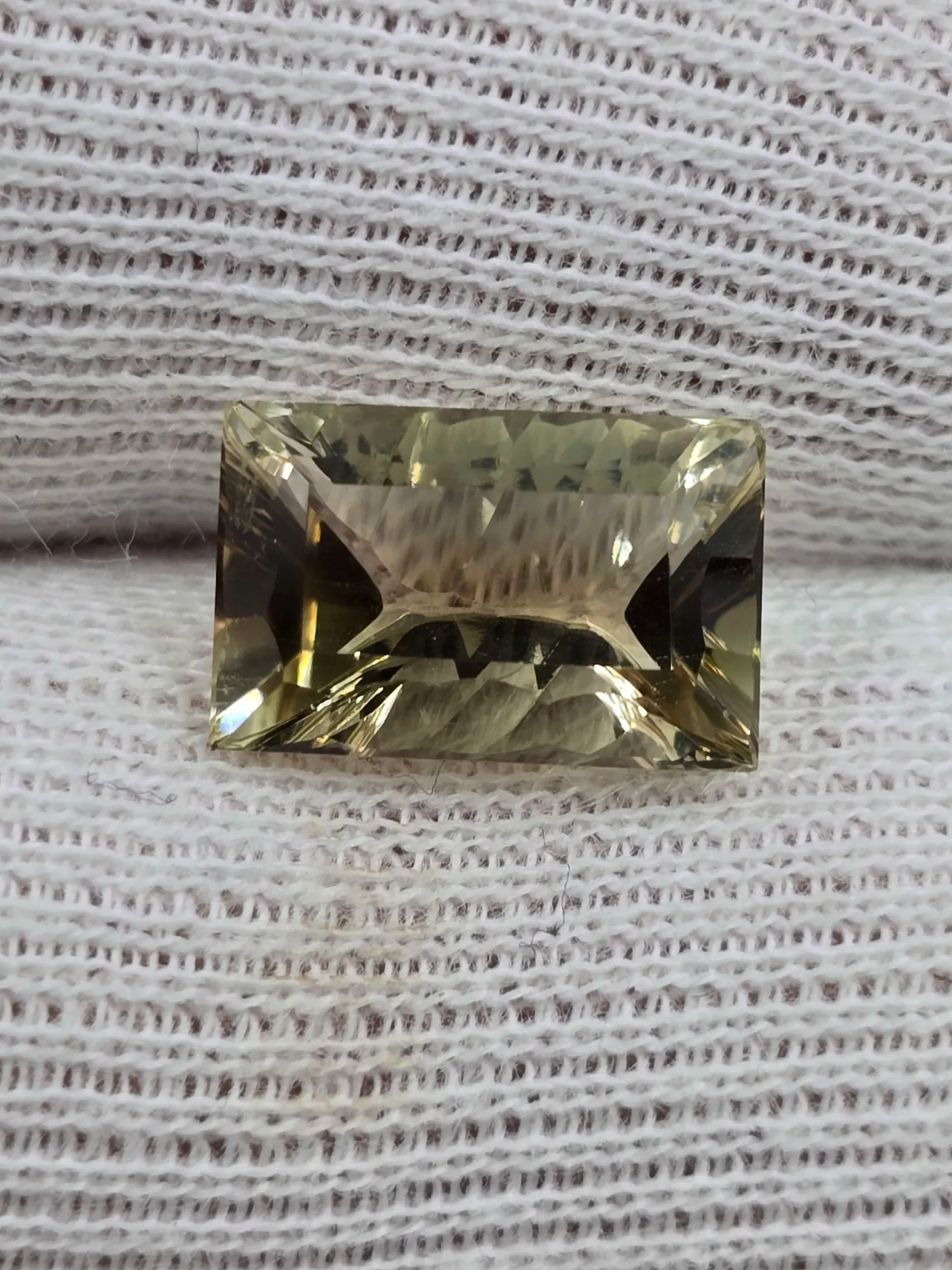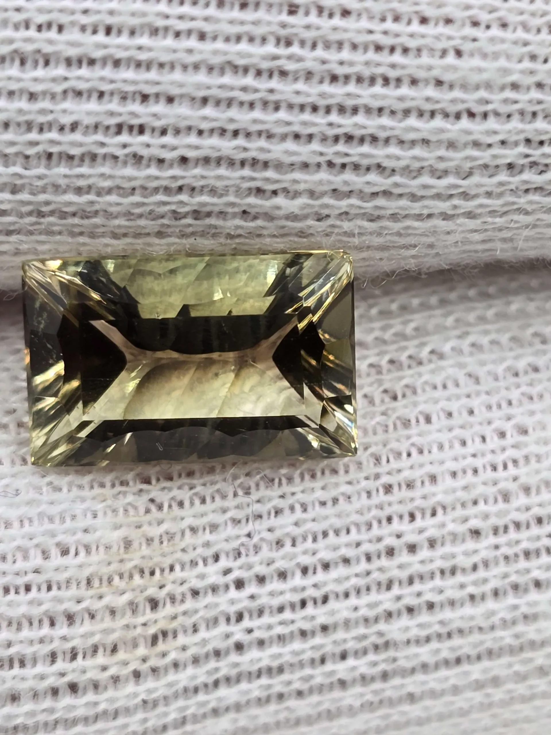 This one is cut in a rectangle with concave cuts on the sides to give it extra refraction. Photos just don’t do this stone justice.