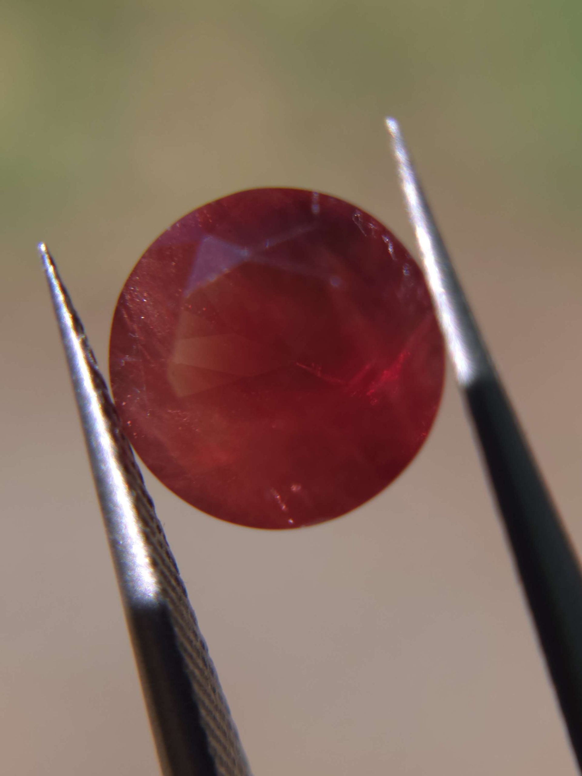 Deep burgundy red color with a hint of schillerization for added depth and sparkle