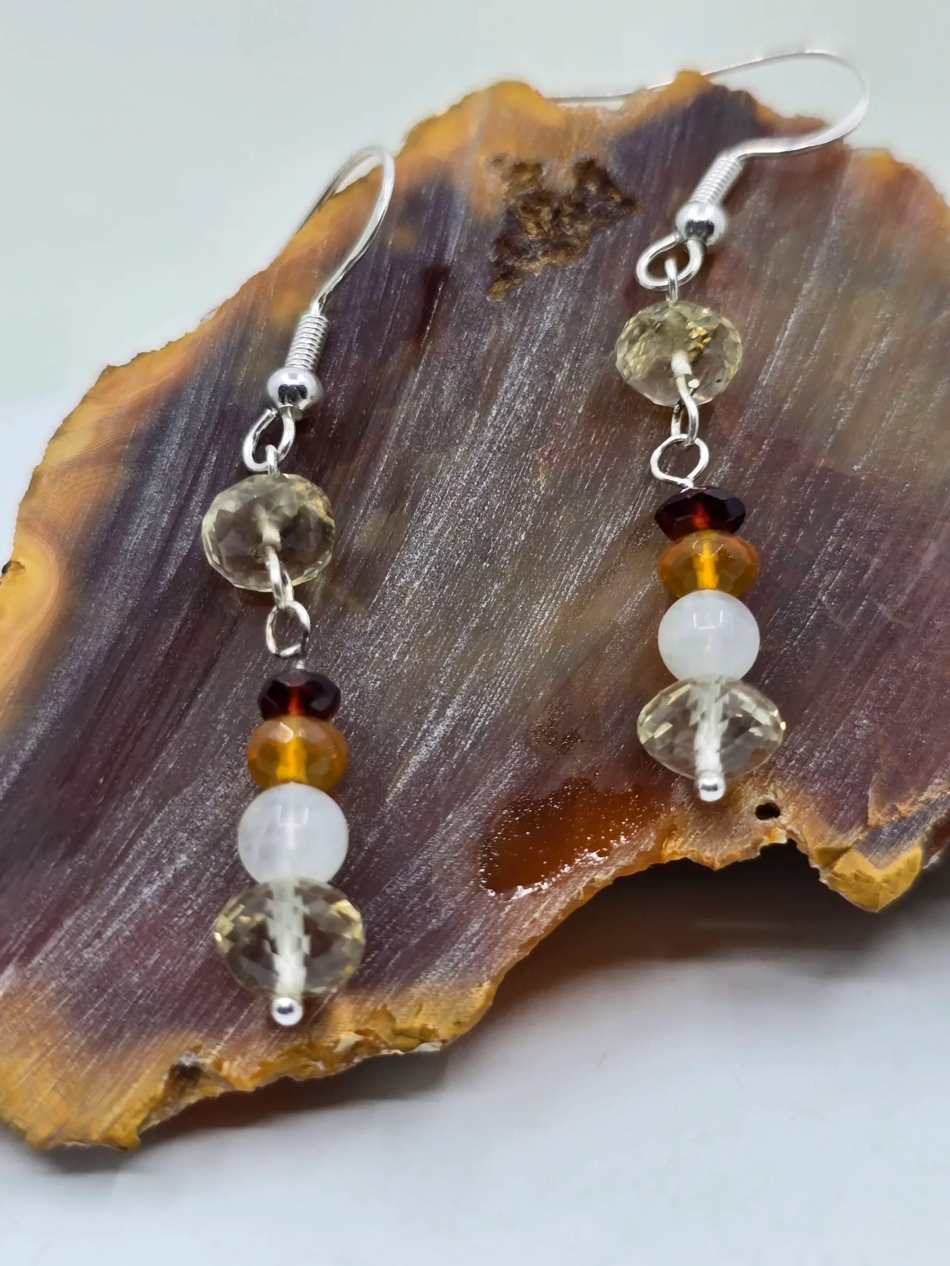 Handmade Oregon Sunstone, Oregon Fire Opal, moonstone and garnet beaded earrings