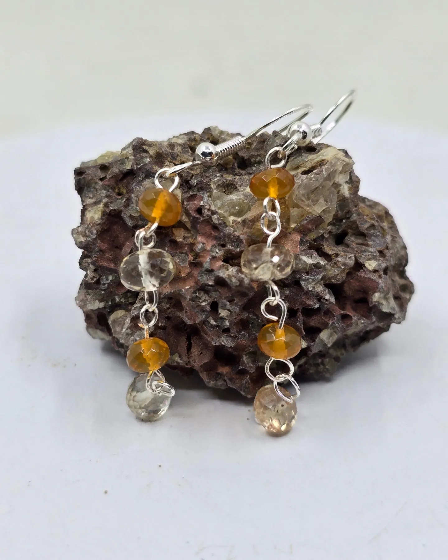 Take a look at these sweet and elegant Oregon Sunstone and Oregon Fire Opal beaded earrings, strung together on sterling silver hand crafted chain.