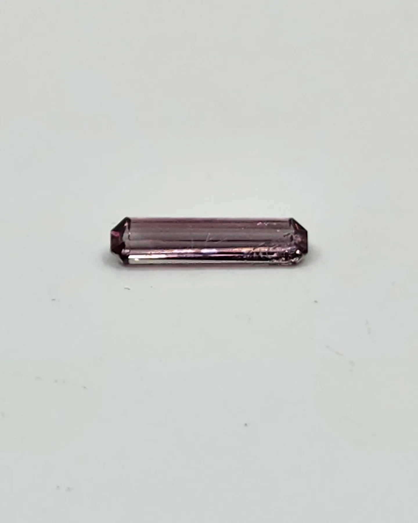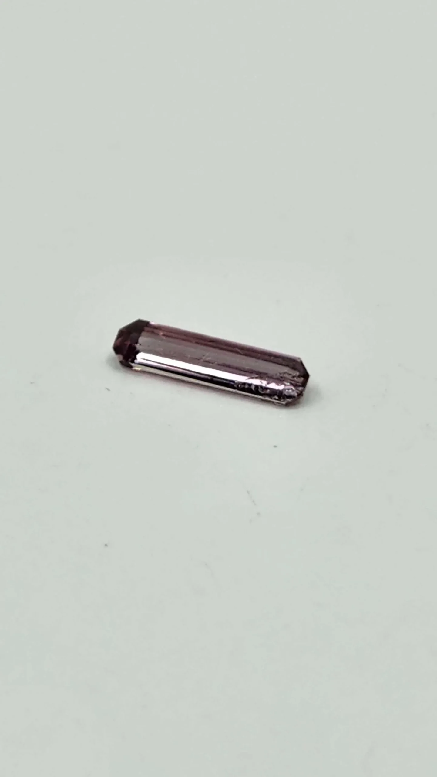 This pink diaspore from Afghanistan has such a captivating color. There’s a slight change in incandescent or low light compared to bright white light where it will turn more pink or more lavender.